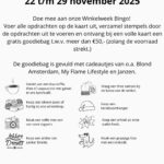 Tijdens de Borger Winkelweek hebben wij een leuke Winkelweek Bingo. Voer alle opdrachten op de kaart uit, verzamel stempels door de opdrachten uit te voeren en ontvang bij een volle kaart een gratis goodiebag t.w.v. meer dan € 50,- (zolang de voorraad strekt) De goodiebag is gevuld met cadeautjes van o.a. Blond Amsterdam, My Flame Lifestyle en Janzen. Maximaal... -