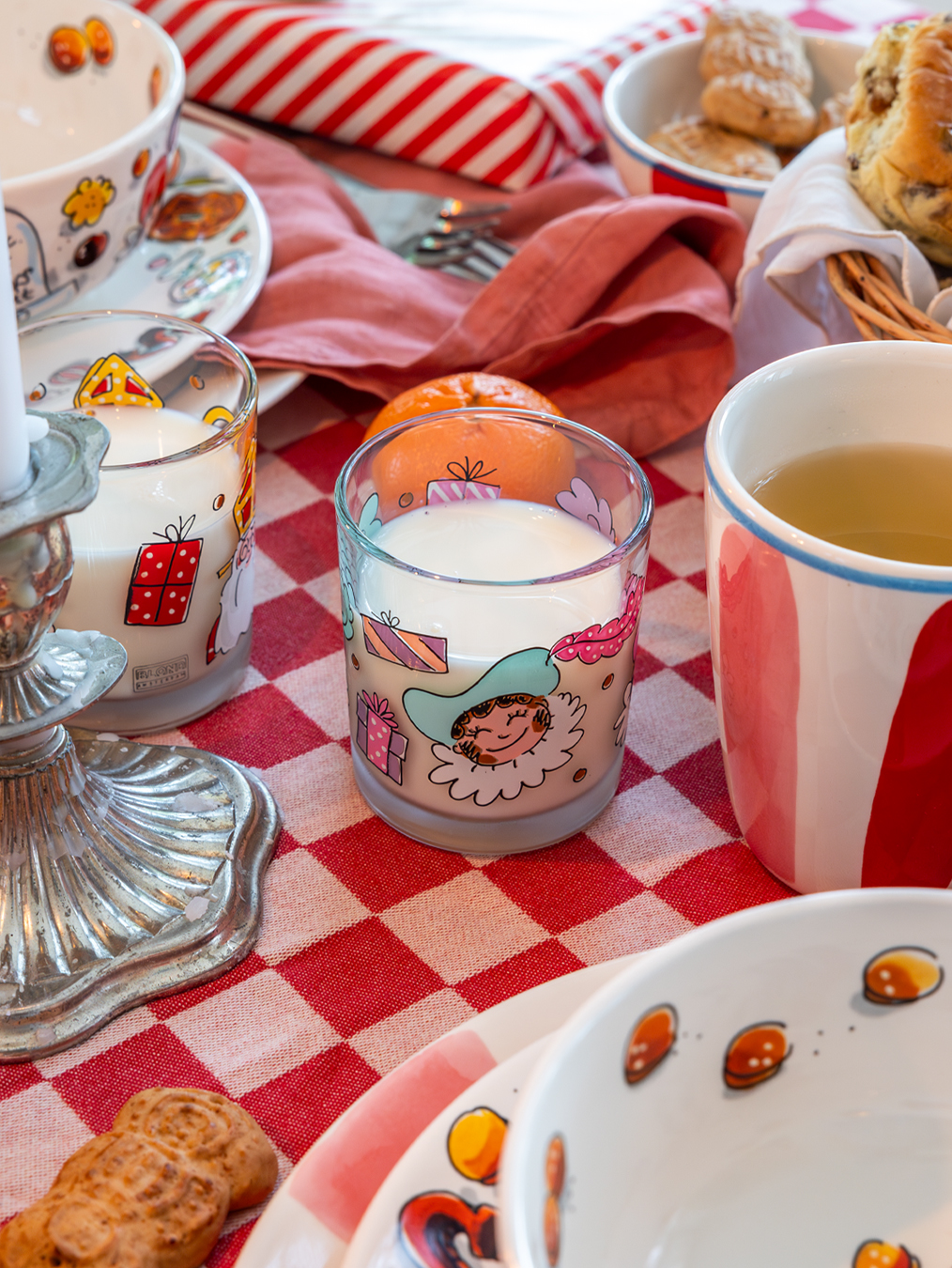 Maak de sinterklaastafel extra feestelijk met dit sapglas vol kleurrijke Pieten, snoepjes en cadeautjes. Dit glas is onderdeel van de Blond Amsterdam Sint collectie en brengt direct een glimlach op je gezicht. Perfect om uit te drinken tijdens een gezellig 5 decemberontbijt of om te geven als origineel cadeau. Liever een complete Blond tafel? Combineer dit sapglas dan met de andere Sint items van Blond Amsterdam voor een speelse en herkenbare setting aan tafel of in je servieskast.