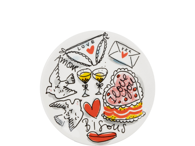 Ontbijt op bed wordt nóg romantischer met dit 12 cm Valentijnbordje vol liefdevolle details. De illustraties zijn geïnspireerd op heerlijke romantische cliché’s: brieven vol liefdesverklaringen, duiven met boodschap, hartjes, kusjes en natuurlijk zoetigheden, want liefde gaat nu eenmaal ook een beetje door de maag. Het bordje straalt bisous uit en past perfect bij een (klein) croissantje (en ja, de kruimels krijg je er gratis bij). Dankzij het compacte formaat is het ideaal voor kleine hapjes, iets lekkers bij de koffie of een symbolisch cadeautje voor je geliefde.